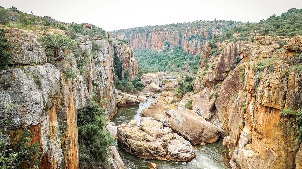 Wenn ihr noch ein Stückchen weiter herum lauft, kommt ihr zu einem weiteren Viewpoint. Ihr könnt direkt über den Blyde River Canyon blicken. Der Blyde River Canyon ist eine massive und majestätische Schlucht aus rotem Sandstein, deren Flanken fast senkrecht zum Wasser am Grund abfallen. Seine bizarren Steilabfällen haben eine Tiefe von ca. 800 m, die der Fluss durch verwitterte Dolomitschichten einst gegraben hat.Im Mittelpunkt dieser Landschaft befindet sich das gleichnamige Nature Reserve, welches knapp 26.000 Quadratkilometer groß ist und zu den spektakulärsten Naturgebieten Südafrikas gehört. Es bildet den Plateaurand der Drakensberge und zieht sich bis nach Mosambique.