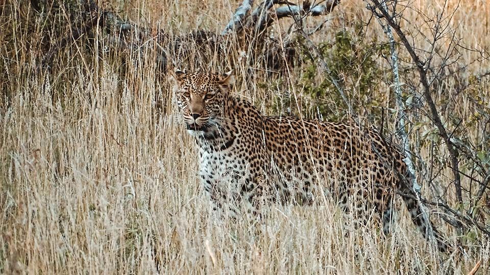 Nach unserem Bush Walk am Morgen, hatten wir noch etwas Zeit um in unserer Lodge zu Entspannen, bevor es am späten Nachmittag auf Abendsafari ging. Diesmal nicht zu Fuß unterwegs, sondern mit offenen Safarifahrzeugen. Wir schlängelten uns durch dichtes Gestrüpp und über Steine und ich fragte mich, ob wir nicht viel zu laute Geräusche machen mit unserem Safarifahrzeug. Doch dieses Mal hatten wir unglaublich großes Glück, denn wir konnten bereits drei der berühmten Big Five Südafrikas sehen - einen Büffel, Löwen und einen Leoparden. Der Büffel versteckte sich scheu aber wachsam hinter hohem Gras. Doch dafür schlenderte der Leopard umso majestätischer an unserem Wagen vorbei. Das Erlebnis einen seltenen Leoparden in die braunen Augen zu blicken, ist einfach unglaublich und vermutlich ein Erlebnis das ich nie vergessen werde. Während dieser Safari kam das Entdeckergen wieder voll auf seine Kosten. Denn alle haben fleißig die Augen offen gehalten und geschaut, ob hinter dem nächsten Busch nicht etwas zu entdecken ist. So konnten wir sogar noch eine Löwenfamilie entdecken, die gemütlich im Gras lag und sich entspannte. Kurz vor Sonnenuntergang legten wir eine kleine Pause an einem größeren Wasserloch ein um die untergehende Sonne zu bestaunen. Ein wirklich wunderschöner Anblick, in totaler Stille nur mit dem Zierpen der Grillen. Nachdem die Sonne untergegangen war, hat Joe der alte Fuchs, sogar ein Chameleon in einem Baum entdeckt - keine Ahnung wie er das gesehen hat. Ich durfte das süße Ding sogar einmal auf den Arm nehmen - großartig.