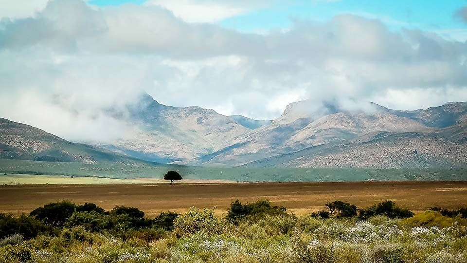 Ganz anders sieht es dann im weiteren Streckenverlauf in der Kleinen Karoo aus. Hier ist die Landschaft eher trocken und die am Horizont auftauchenden Bergkuppen erscheinen grau. Autofahrer, die gern offroad fahren, können durch Umwege über die südlich gelegenen Berge einige wunderschöne Passstraßen erkunden.